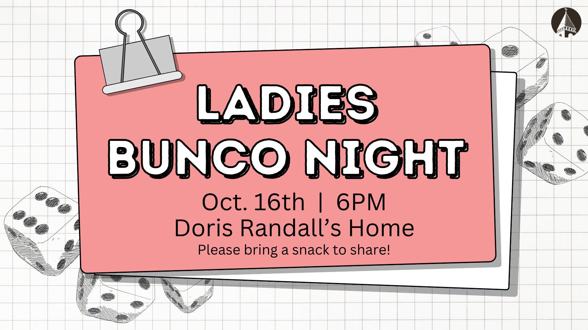 Ladies Bunco Night + Add to Google Calendar + iCal / Outlook export 00 days 00 hours 00 minutes 00 seconds Date Oct 16 2025 Time 6:00 pm - 8:00 pm Share this event