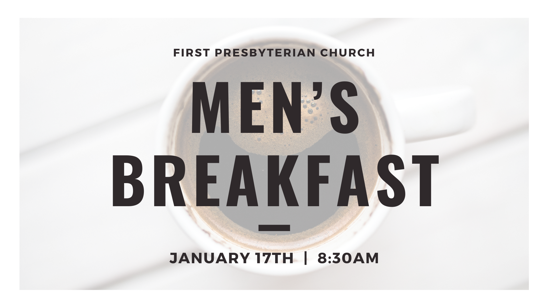 Men’s Breakfast Meets the 3rd Saturday of each month from 8:30AM-9:30AM in the FPC gym. Join us for a lesson, a great meal, and fellowship. All men and their children are welcome. + Add to Google Calendar + iCal / Outlook export 00 days 00 hours 00 minutes 00 seconds Date Jan 17 2026 Time 8:30 am - 9:30 am Share this event