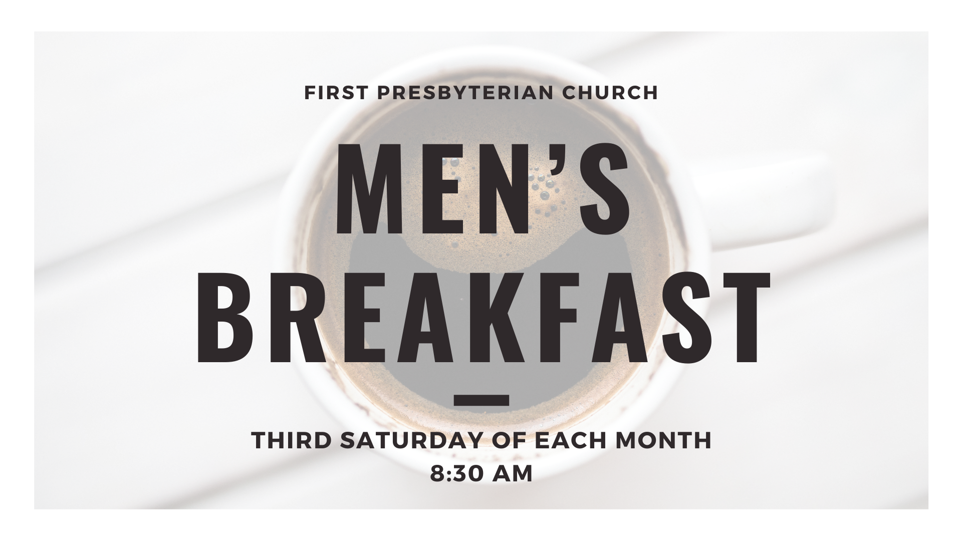 Men’s Breakfast Meets the 3rd Saturday of each month from 8:30AM-9:30AM in the FPC gym. Join us for a lesson, a great meal, and fellowship. All men and their children are welcome. + Add to Google Calendar + iCal / Outlook export 00 days 00 hours 00 minutes 00 seconds Date Mar 21 2026 Time 8:30 am - 9:30 am Share this event