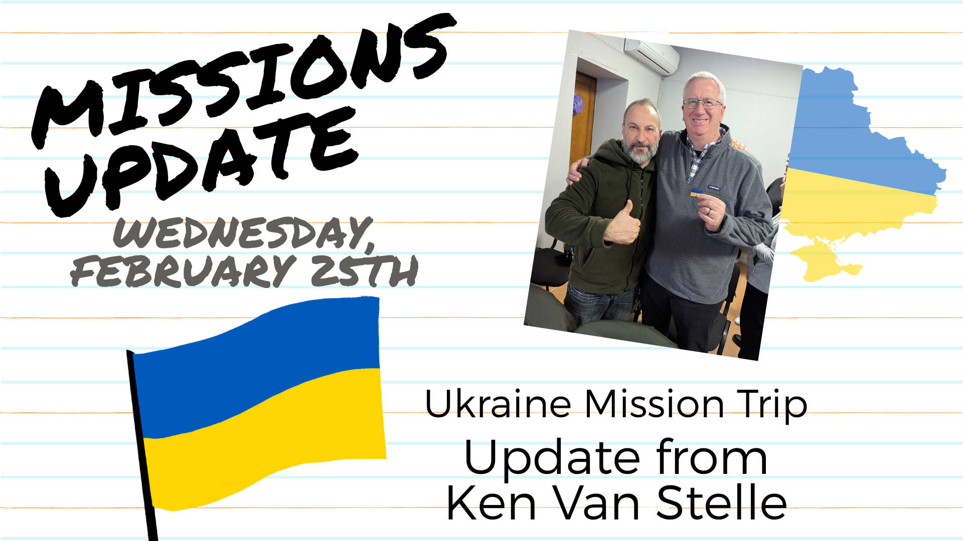 Ukraine Mission Trip Update + Add to Google Calendar + iCal / Outlook export 00 days 00 hours 00 minutes 00 seconds Date Feb 25 2026 Time 6:15 pm - 7:30 pm Category Featured Share this event