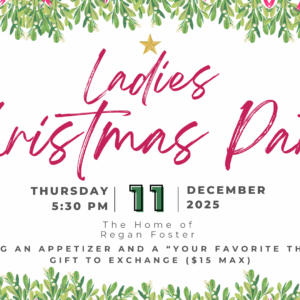 Ladies Christmas Party: Our annual ladies’ Christmas Party is at Regan Foster’s home, 2 Bayou Place, Gulfport, on December 11th at 5:30PM. Please bring an Appetizer and a “Your Favorite Thing” gift to exchange ($15 Max).